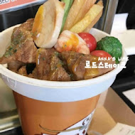 每天都有新鮮事...靠近這附近就可聞到各種異國街邊美食香氣撲鼻而來...韓國美食綜藝節目...也能用盒裝方式單點排餐...不用到烤肉店就能享用好吃的肉排或海鮮...牛排套餐也能帶著走隨處享用...梨泰院貴氣逼人精品甜點